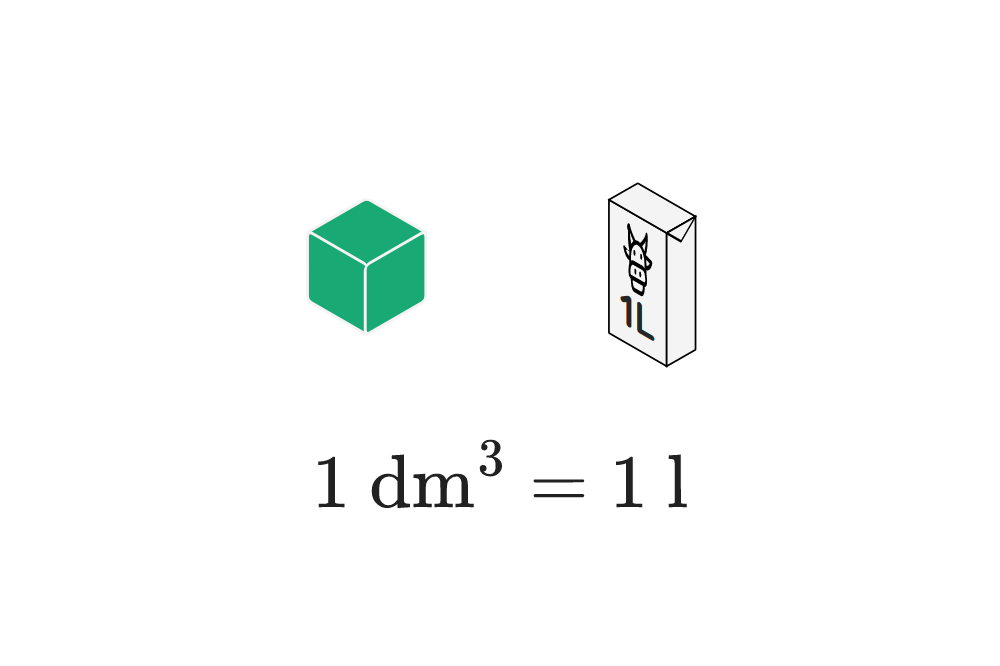 Zoals we al meerdere keren in deze les hebben herhaald, moeten we bij het omzetten van eenheden telkens weten waar van de ene eenheid gelijk aan is in de andere eenheid. In deze paragraaf leren we een trucje om dit te berekenen voor omzettingen tussen liter en kubieke meter.