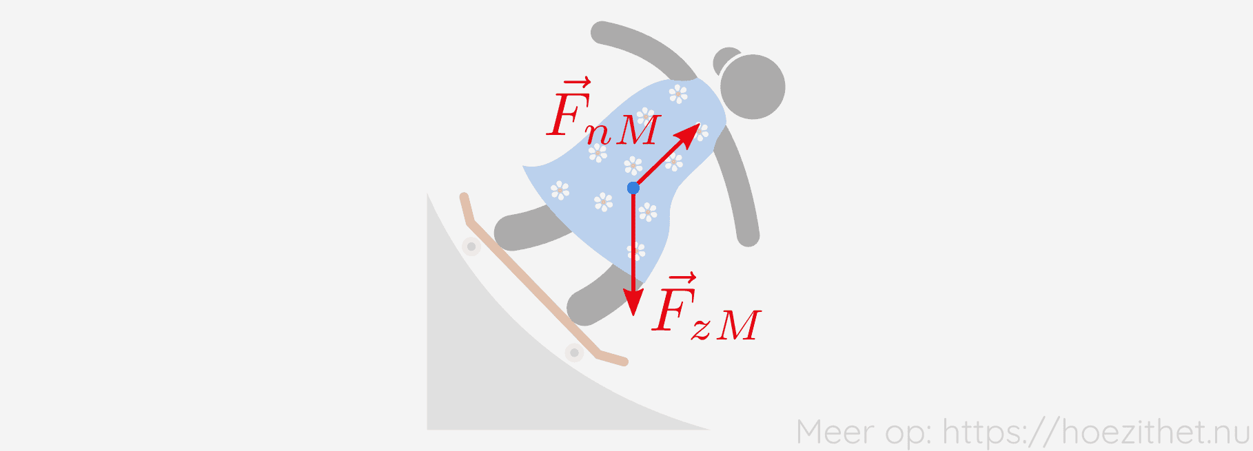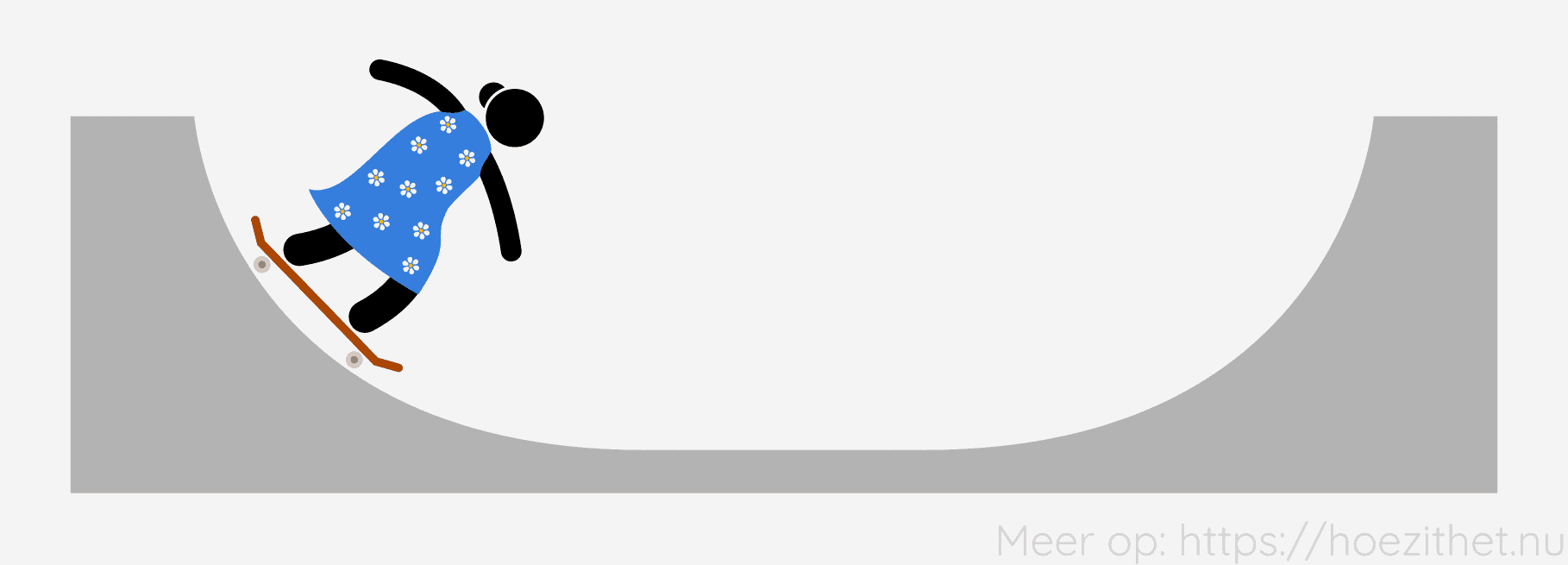 Stel dat Maria het schaatsen beu is en ze zich wil wagen aan een potje skateboarden. Wij gaan de resulterende kracht zoeken die op Maria inwerkt tijdens haar drop van de halfpipe.
