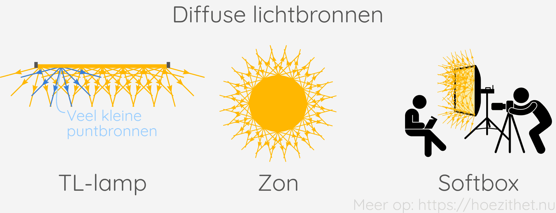 Fotografen moeten voortdurend nadenken over de lichtbron die ze gebruiken. Een puntvormige lichtbron (zoals de flitser op een fototoestel) zorgt namelijk voor schaduwen met heel scherpe randen, wat geen mooie foto oplevert.