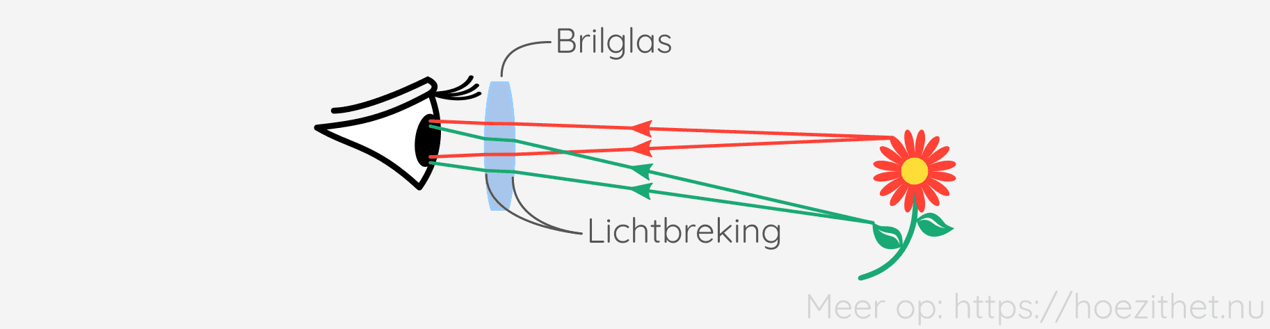 Als je met een bril op naar een bloem kijkt, zullen de lichtstralen niet volledig in een rechte lijn gaan omdat het licht niet enkel door lucht gaat maar ook door het glas van de bril. De middenstof is dan niet homogeen en de lichtstralen zullen zich dus niet rechtlijnig voortplanten.