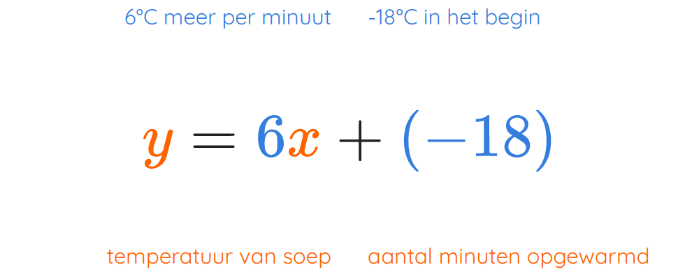 De temperatuur van de soep bedraagt in het begin . Iedere minuut komt daar bij. De temperatuur van de soep is dus gelijk aan plus het aantal minuten maal :