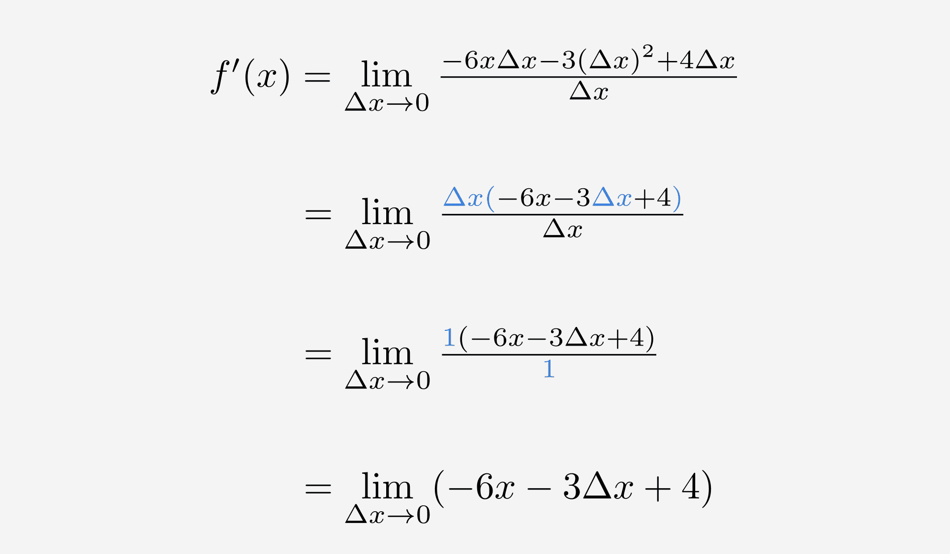 Dat ziet er al een heel stuk properder uit! 😀 Het enige wat ons nu nog rest is de limiet zelf berekenen. De limiet zegt enkel iets over , dus elke term zonder mogen we buiten de limiet zetten. Dan wordt de limiet heel eenvoudig en komt de afgeleide functie van tevoorschijn!