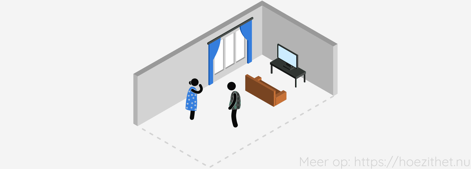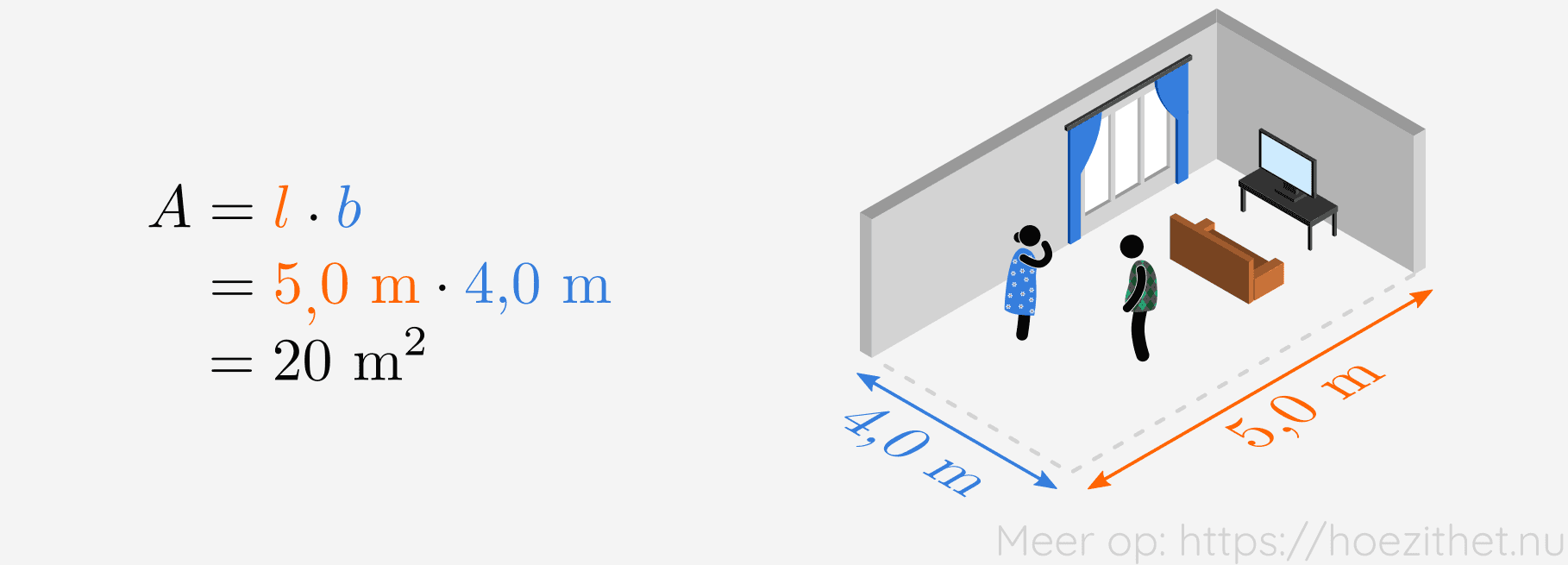 Dan moeten ze eerst weten wat de lengte en de breedte is van de living. Eens ze die gemeten hebben, vinden ze de oppervlakte als volgt: