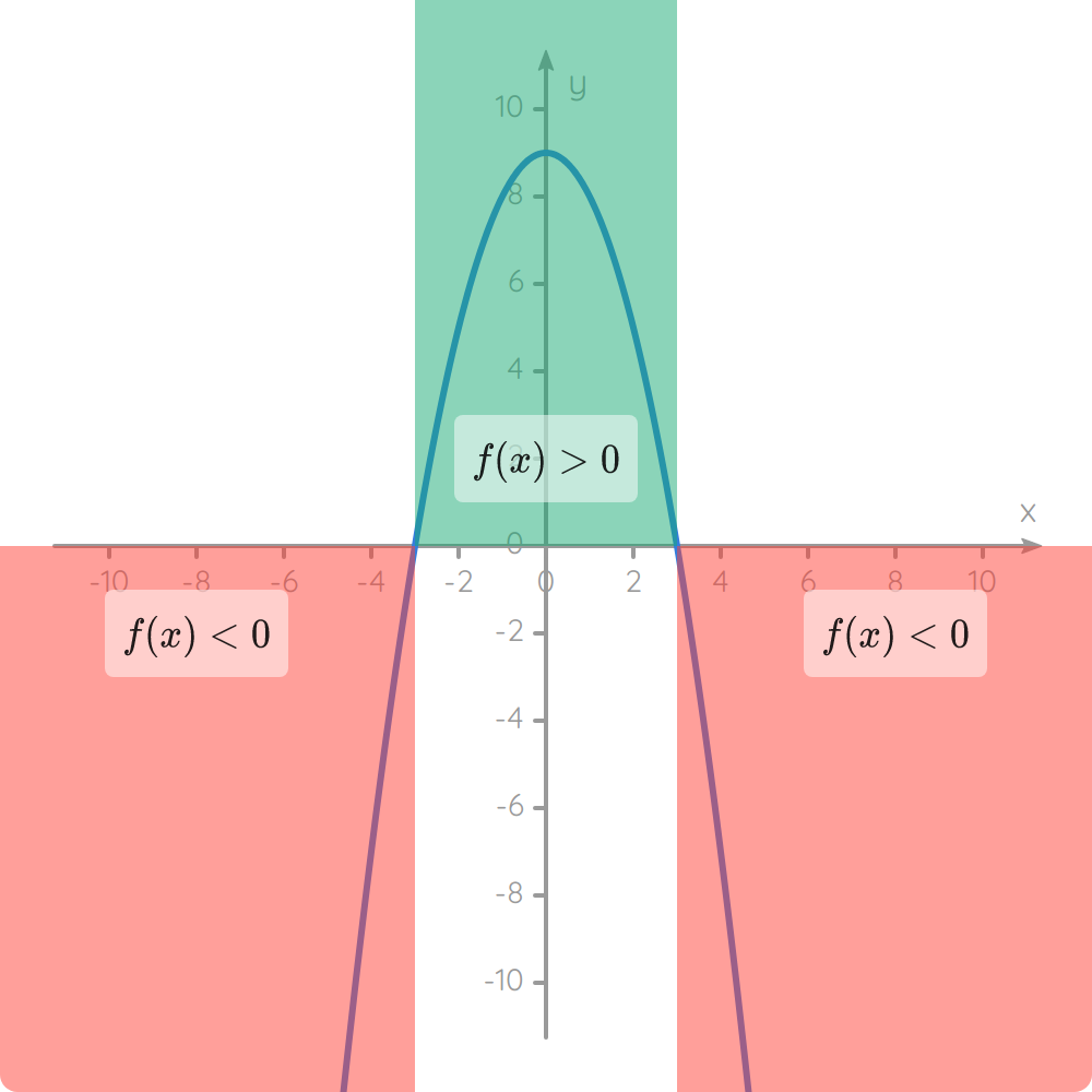 - Voor x-waarden kleiner dan zijn alle y-waarden negatief;
